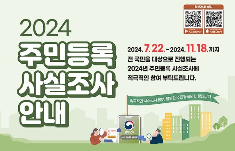 7월 22일부터 8월 26일까지 시행되는 정부24 주민등록 비대면 사실조사.앱을 통해 간편하게 참여할 수 있습니다. 아래 참고해서 진행해주세요!
